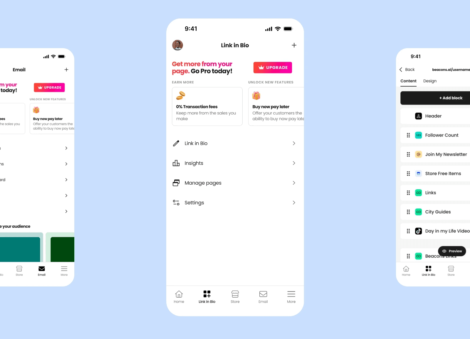 Improved usability foundations: Our redesign reduced cognitive load, improved discoverability, and created room for product growth across core features like Link-in-Bio, Store, and Email.