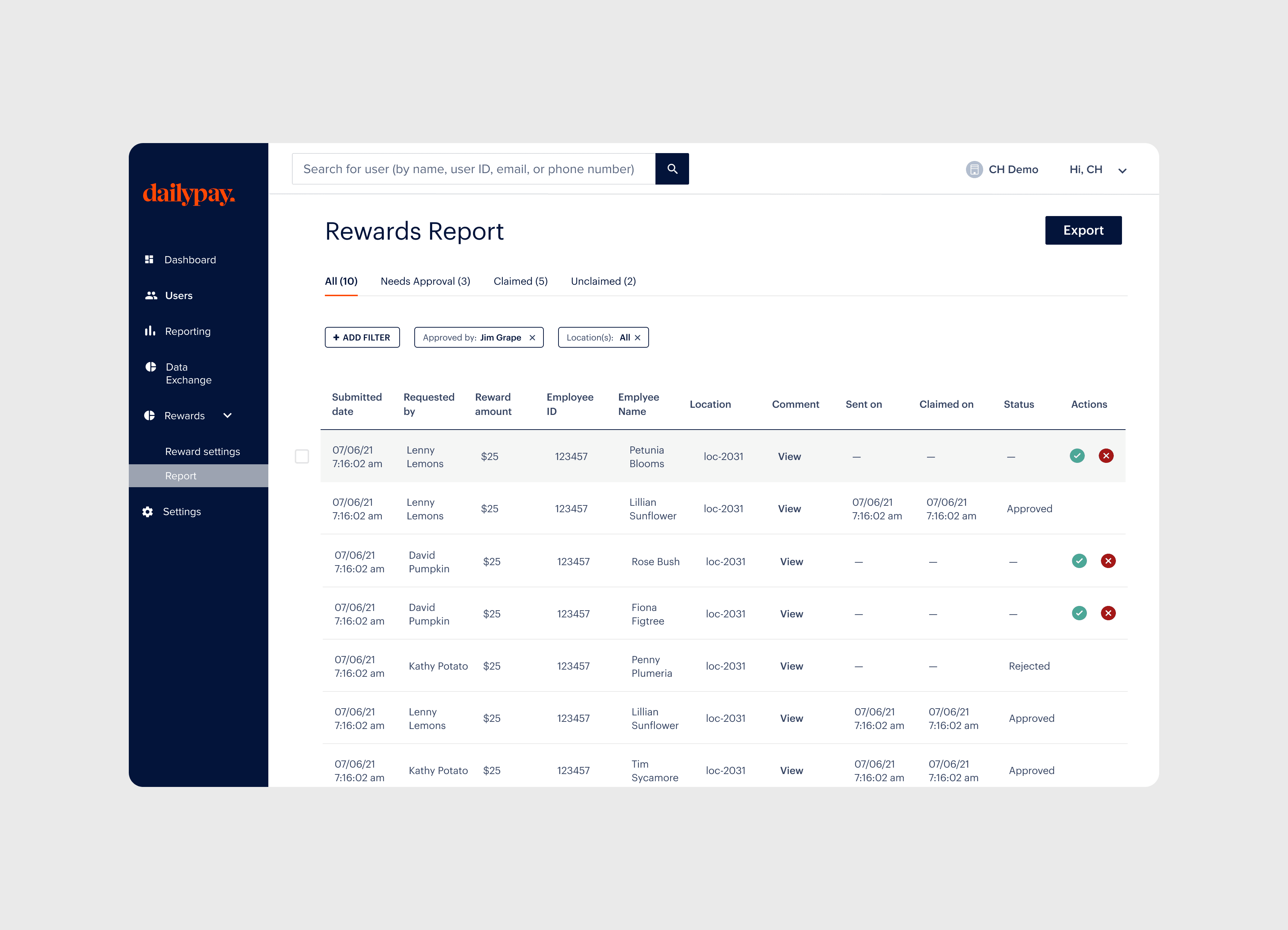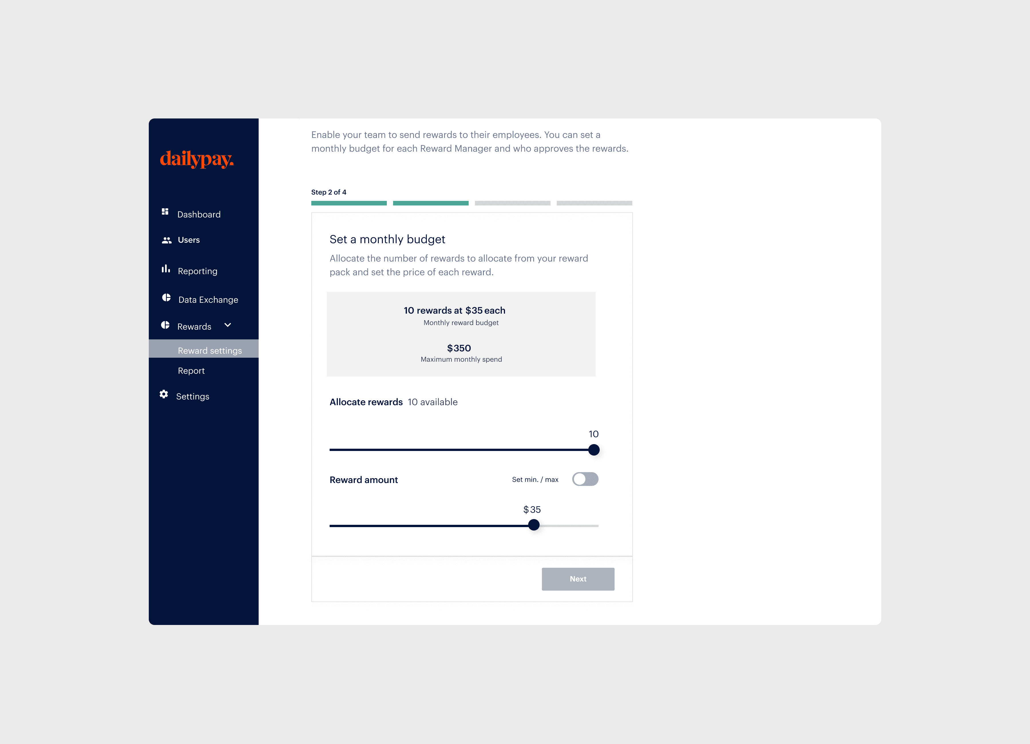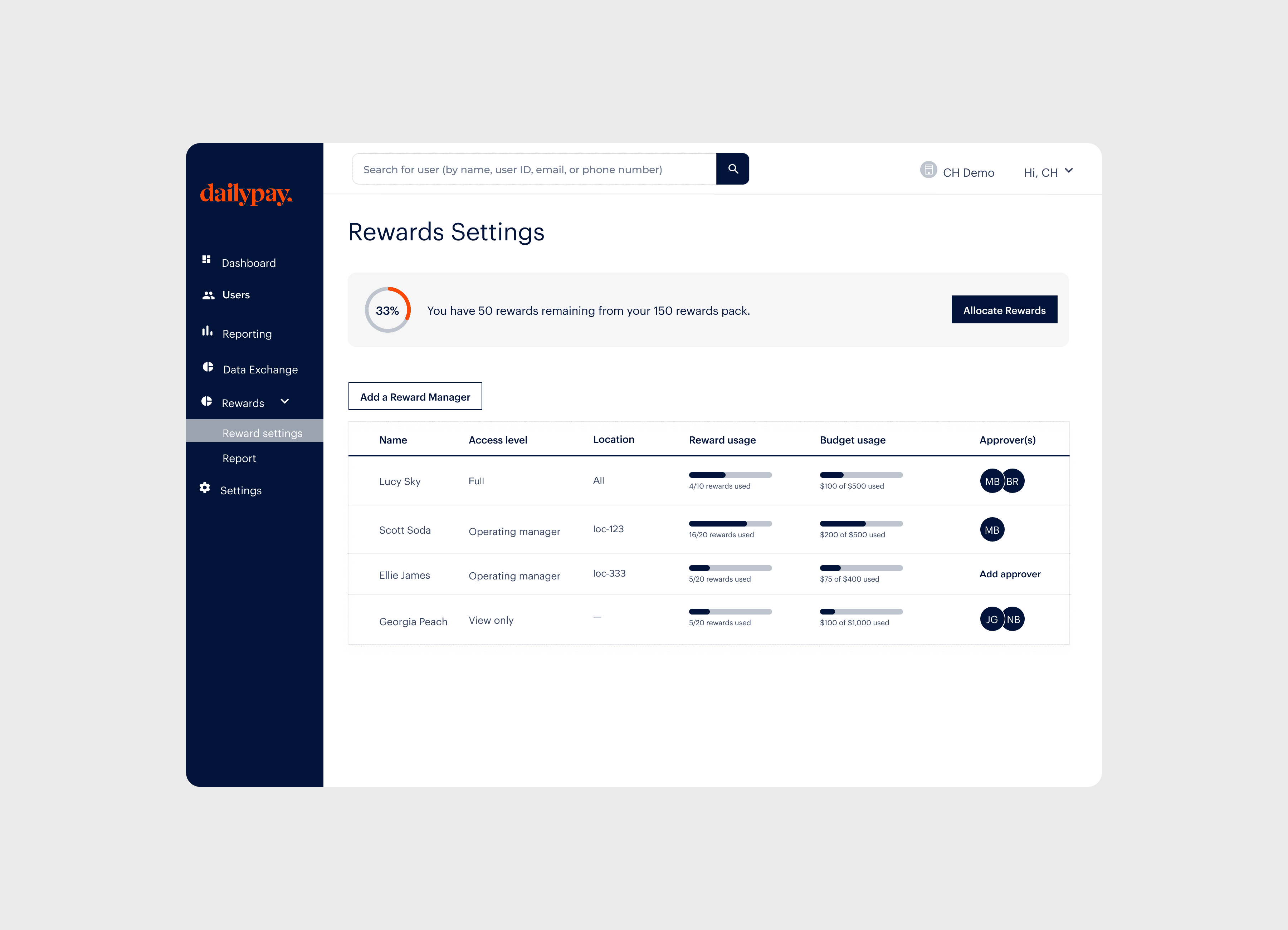 In 2021, I led the design of DailyPay’s Rewards Program, creating a tool that allowed HR teams to engage employees with real-time cash bonuses. Our goal was to empower managers to distribute rewards easily, shift control from payroll to HR, and create a new revenue stream by offering partners the flexibility to purchase rewards in packs.